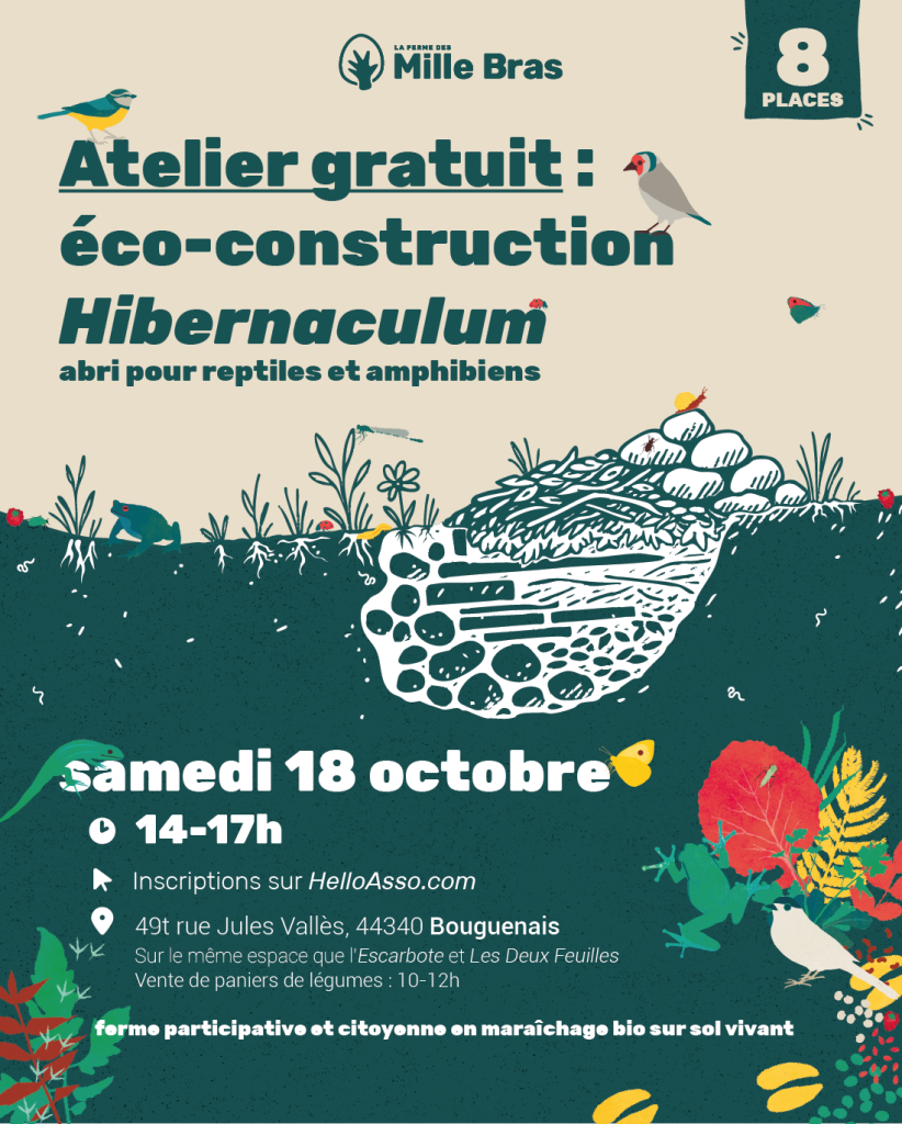Découvrez et participez à l’éco-construction d’un abri pour reptiles et amphibiens à la ferme : nous allons reconstituer un habitat naturel pour cette faune ectotherme (la température de ces animaux est dépendante de la température extérieure) mais pas seulement ! Cet abri est également une zone de thermorégulation, de reproduction, d’alimentation, d’hivernage… Tout en comblant la raréfaction des milieux naturels nécessaires à leur survie, rejoignez-nous pour leur offrir un hiver confortable !